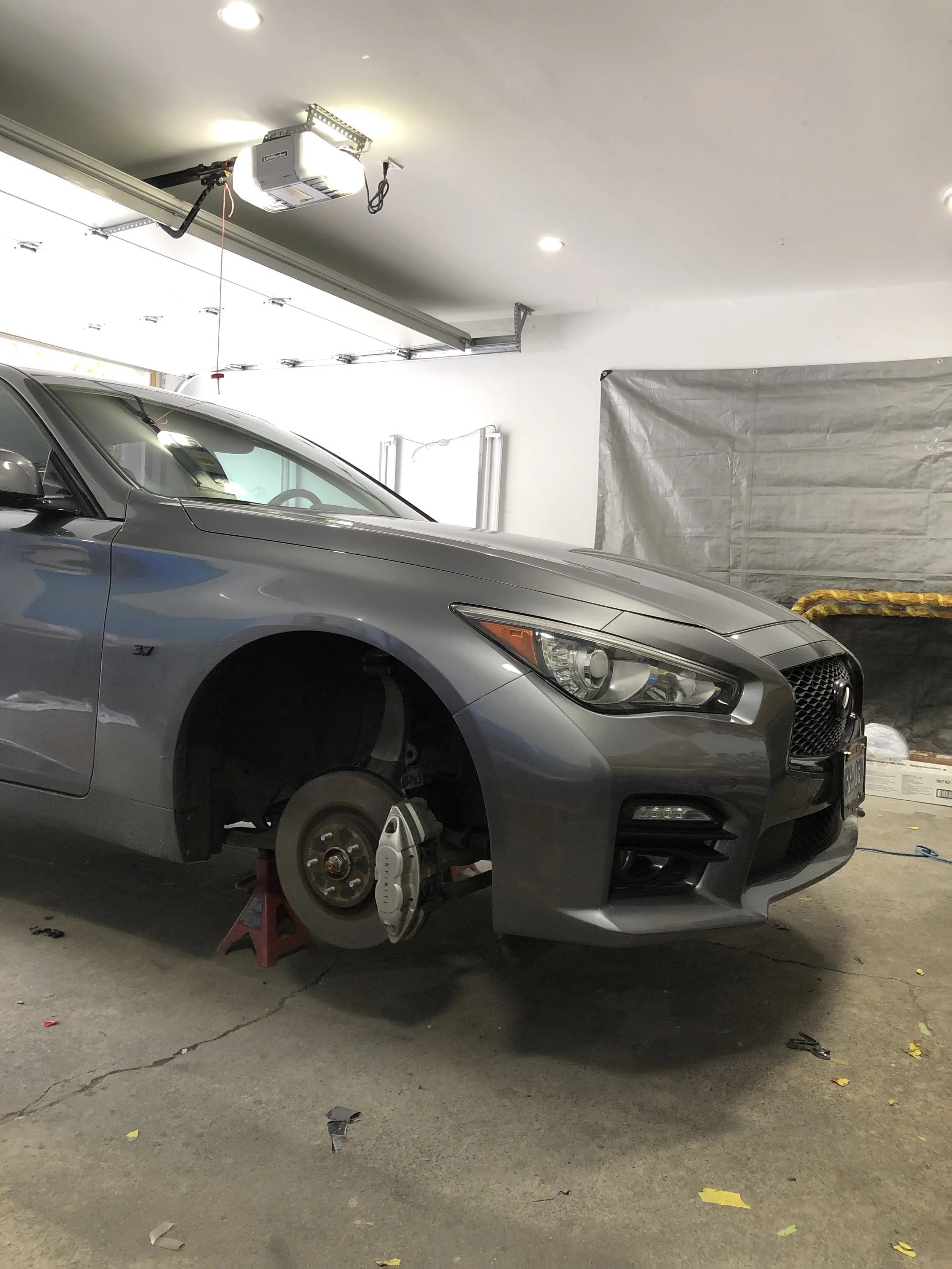 INFINITI Q50S CALIPERS PAINTED YELLOW WITH BLACK 'INFINITI' LOGO