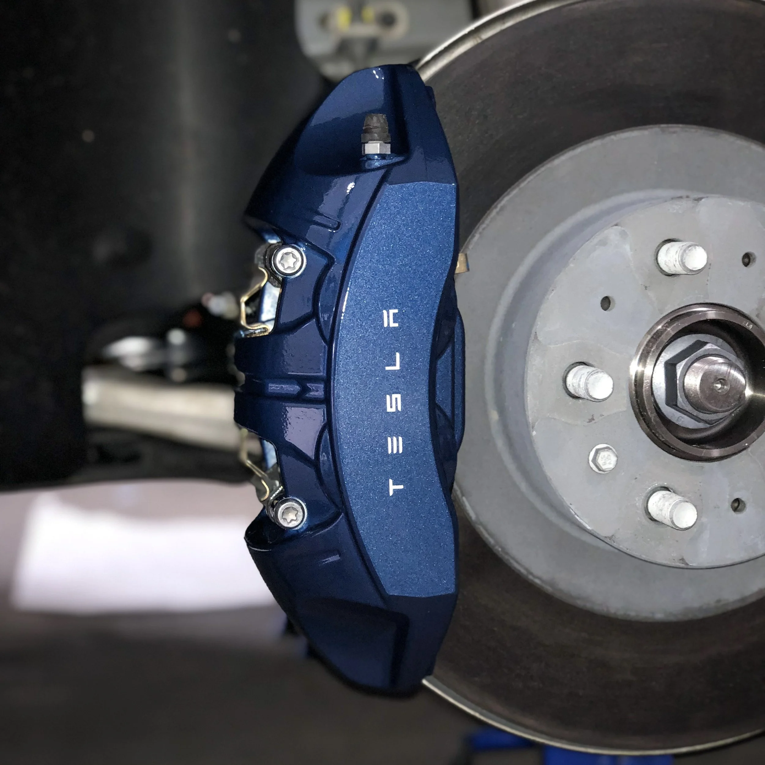 TESLA MODEL 3 CALIPERS PAINTED RED WITH BLACK 'TESLA' LOGOS